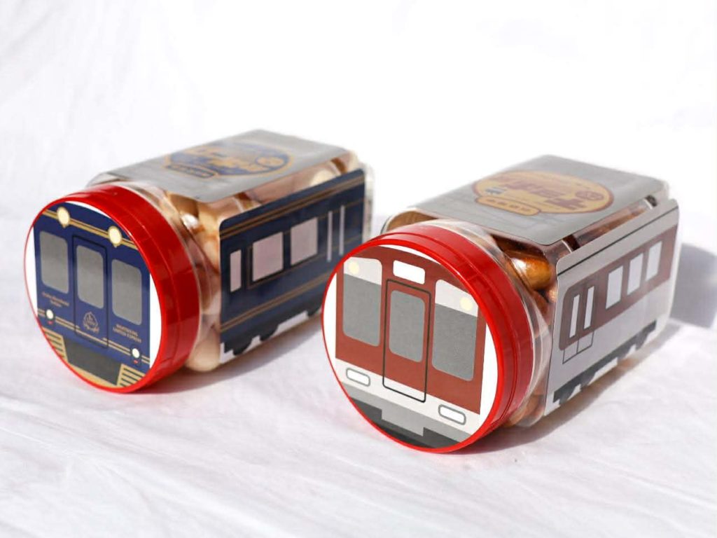 大阪前田製菓さんの乳ボーロとチョボチョボクッキーが、近鉄電車の車両デザインパッケージになりました。